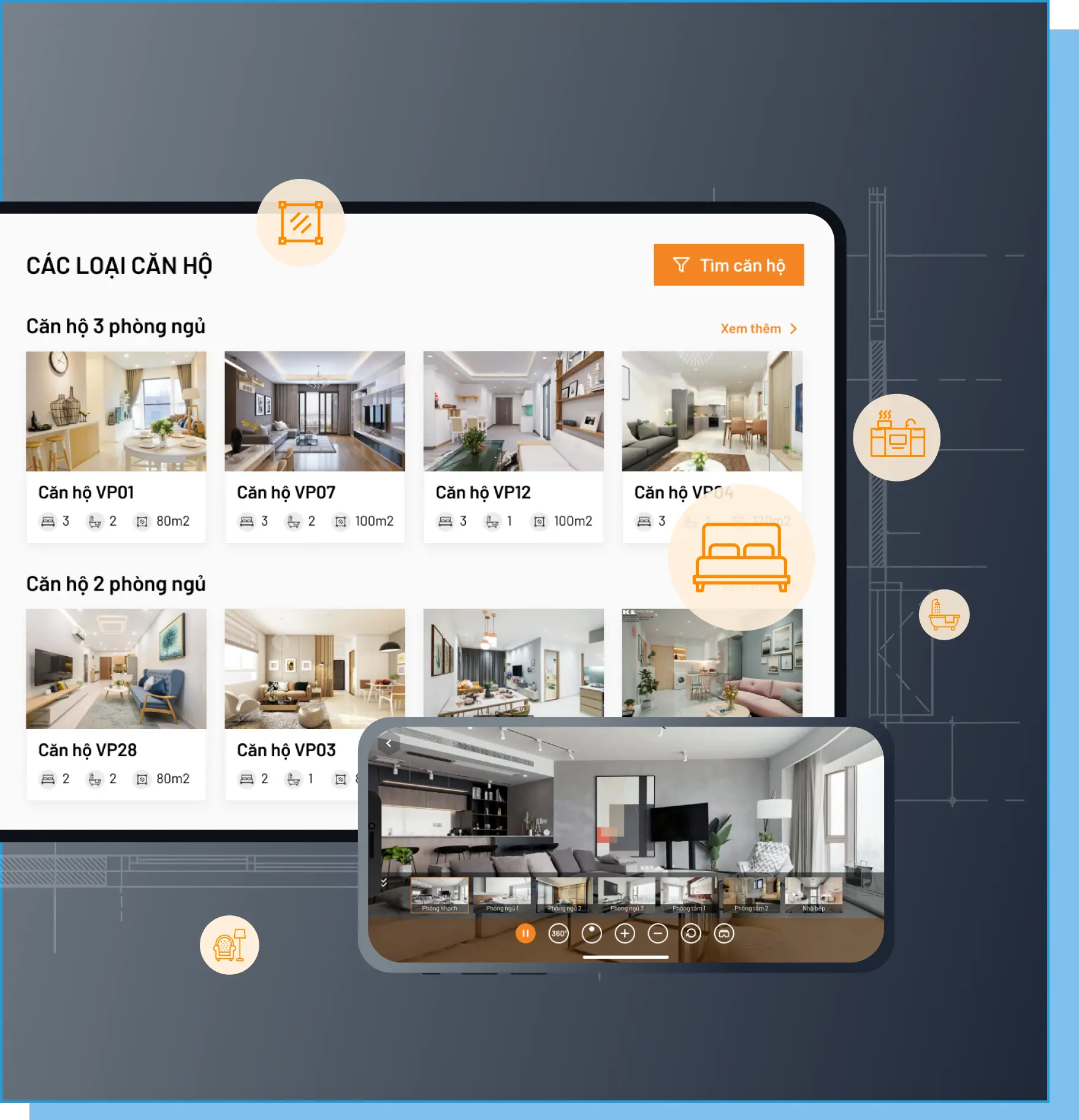 Cho phép nhân viên kinh doanh và người dùng truy cập vào các dự án cũng như các bất động sản với đầy đủ thông tin, hình ảnh (2D, 360 độ, VR), video chi tiết ngay cả khi dự án còn đang trong thời gian xây dựng.