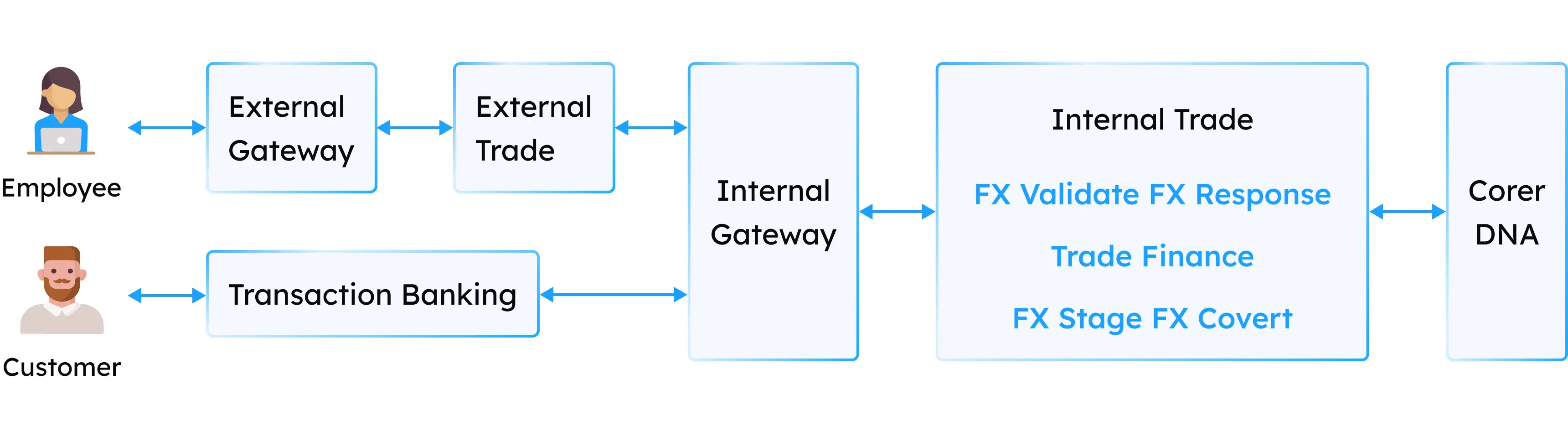 Là một phần của chuyển đổi ngân hàng số, TMA tham gia xây dựng phân hệ thương mại tích hợp để hỗ trợ ngân hàng giao dịch ngoại hối cho người dùng từ quốc tế đến Việt Nam và ngược lại.