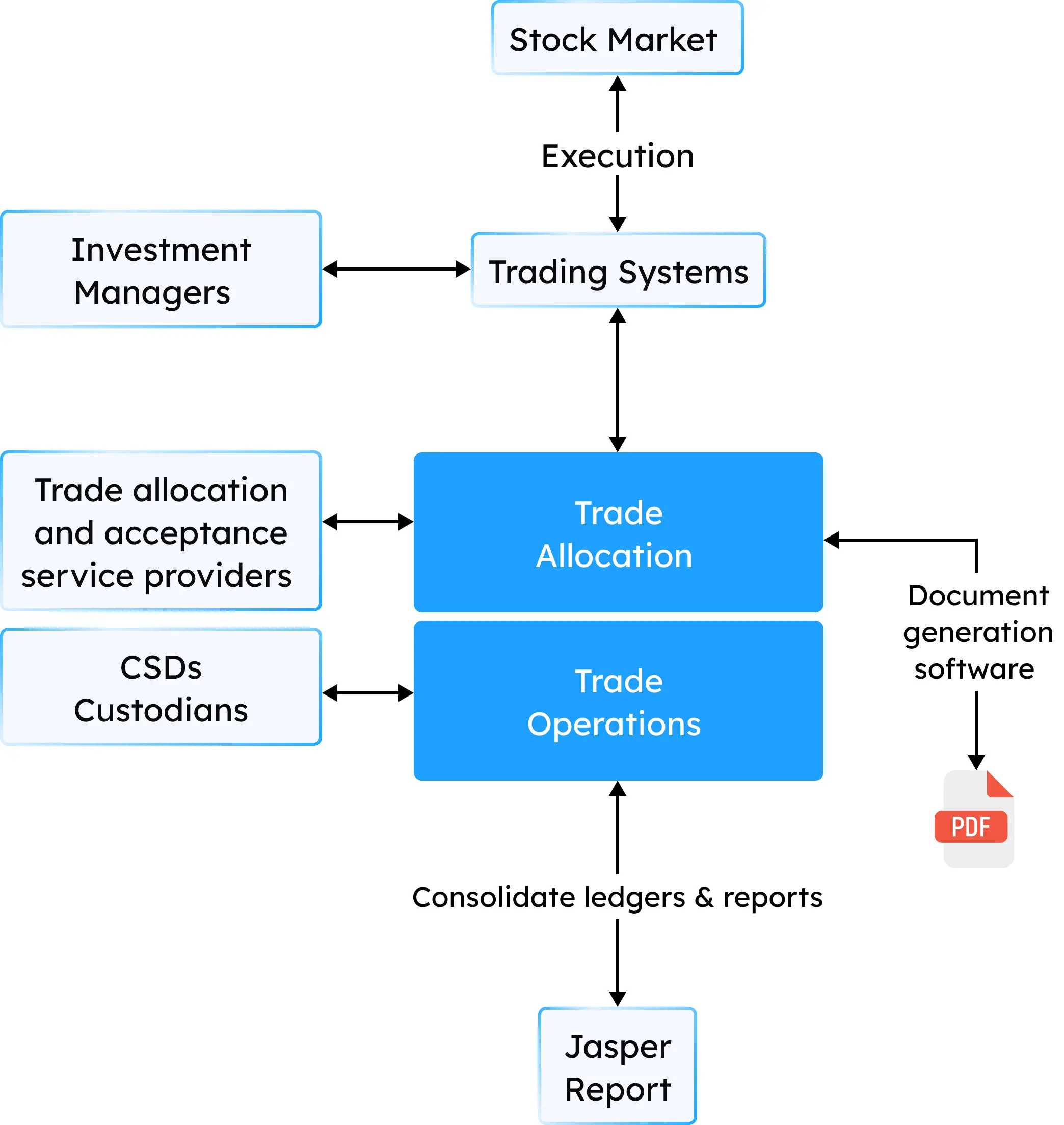 Hệ thống xử lý tự động các ngoại lệ (exceptions), lỗi (errors) hay thu thập thêm các thông tin cần thiết về các giao dịch (enrich trade) cho đến thời điểm thanh toán trên nhiều loại tài sản.
