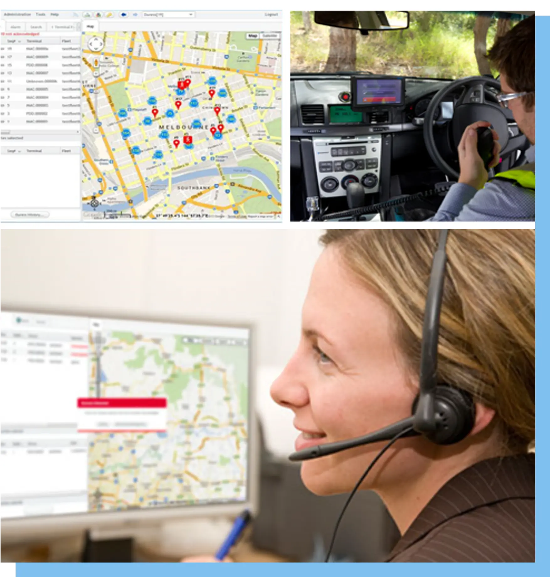 Thu thập và báo cáo dữ liệu về vùng phủ sóng vô tuyến, bao gồm hiển thị bản đồ để theo dõi các hoạt động vận chuyển và giám sát việc tuân thủ lộ trình được thiết lập sẵn.