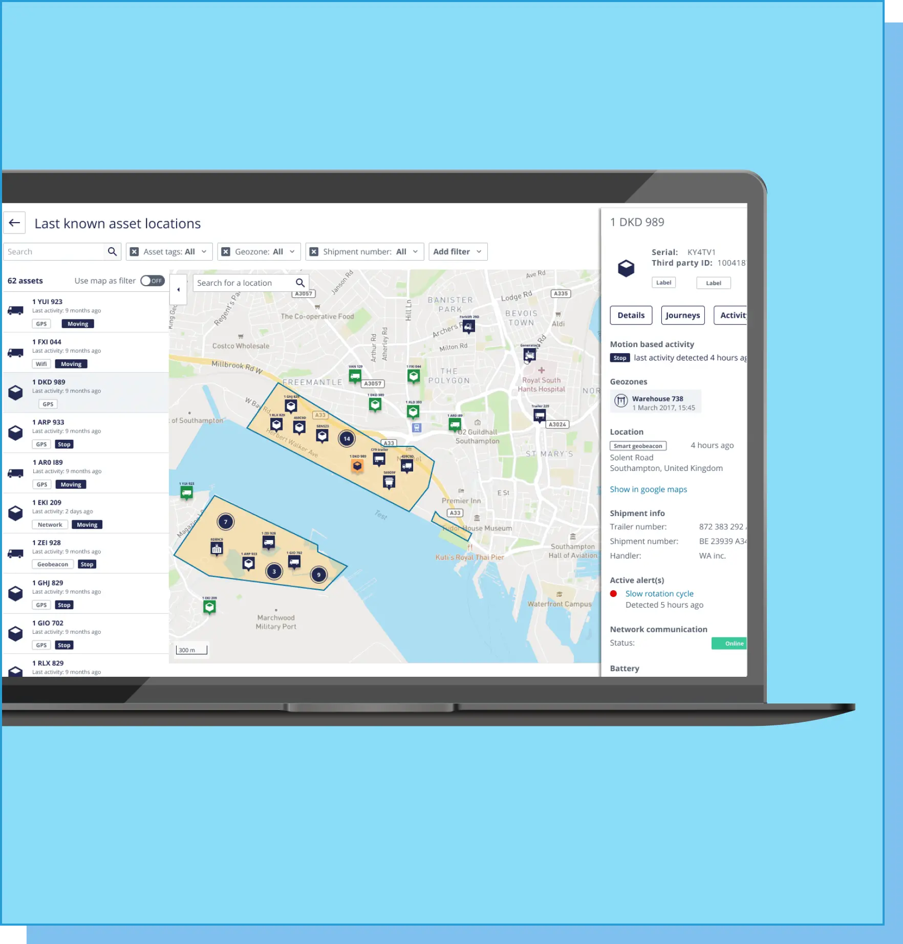 Ghi lại vị trí của tài sản đã dừng ở đâu và trong bao lâu, gửi thông báo trong trường hợp có bất thường.