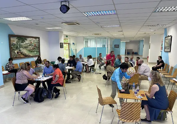 Sau khi tham quan showcase công nghệ của TMA Innovation, đoàn được nghe chia sẻ từ anh Hồng Trần – Senior Vice President về Tập đoàn Công nghệ TMA và chia thành 6 nhóm để thảo luận 2 chủ đề: