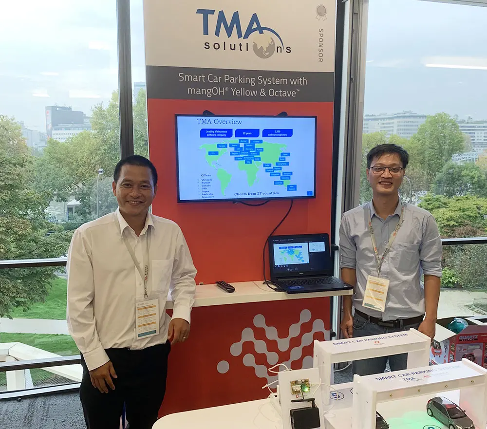 Là đối tác tin cậy của Sierra Wireless, TMA tham gia chương trình với tư cách là nhà tài trợ bạc. Ngoài ra, chúng ta cũng mang đến triển lãm sản phẩm "Smart Car Parking with MangOH Yellow and Octave - ứng dụng giúp cho việc quản lý các bãi đỗ xe một cách đơn giản". Đây là ứng dụng IoT mà TMA đã áp dụng 2 kỹ thuật mới nhất của SierraWireless là board MangoH Yellow (thế hệ mới nhất của board phát triển IoT MangoH) và Octave (IoT Cloud Platform) để xây dựng nên.