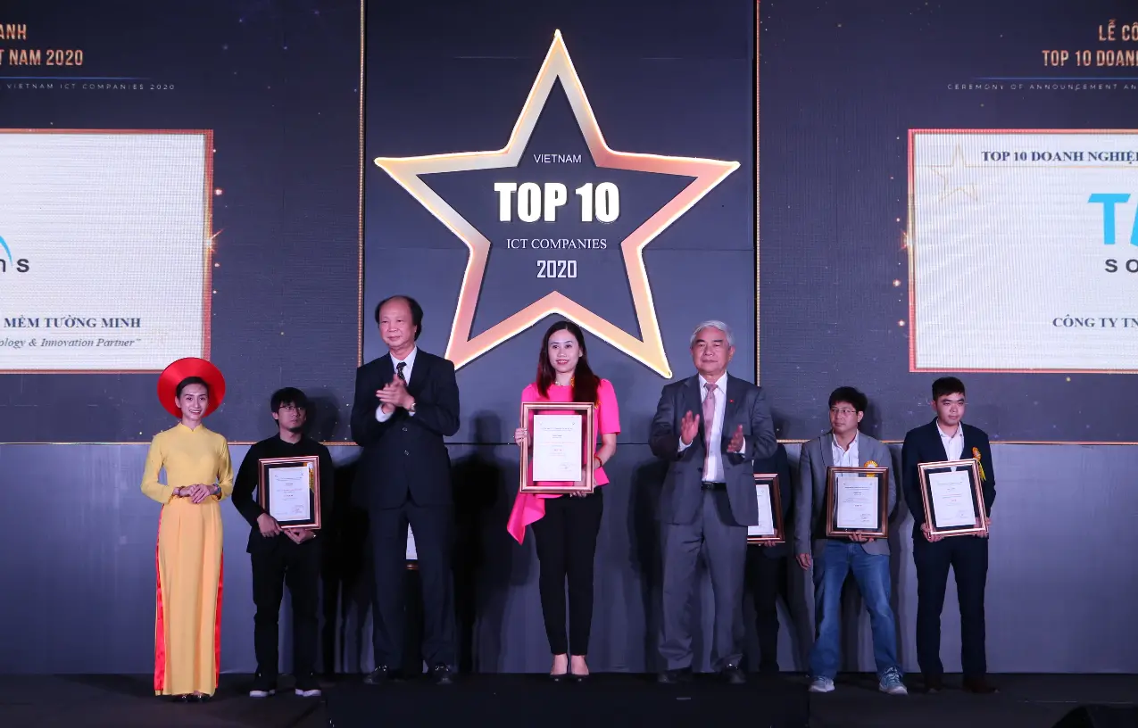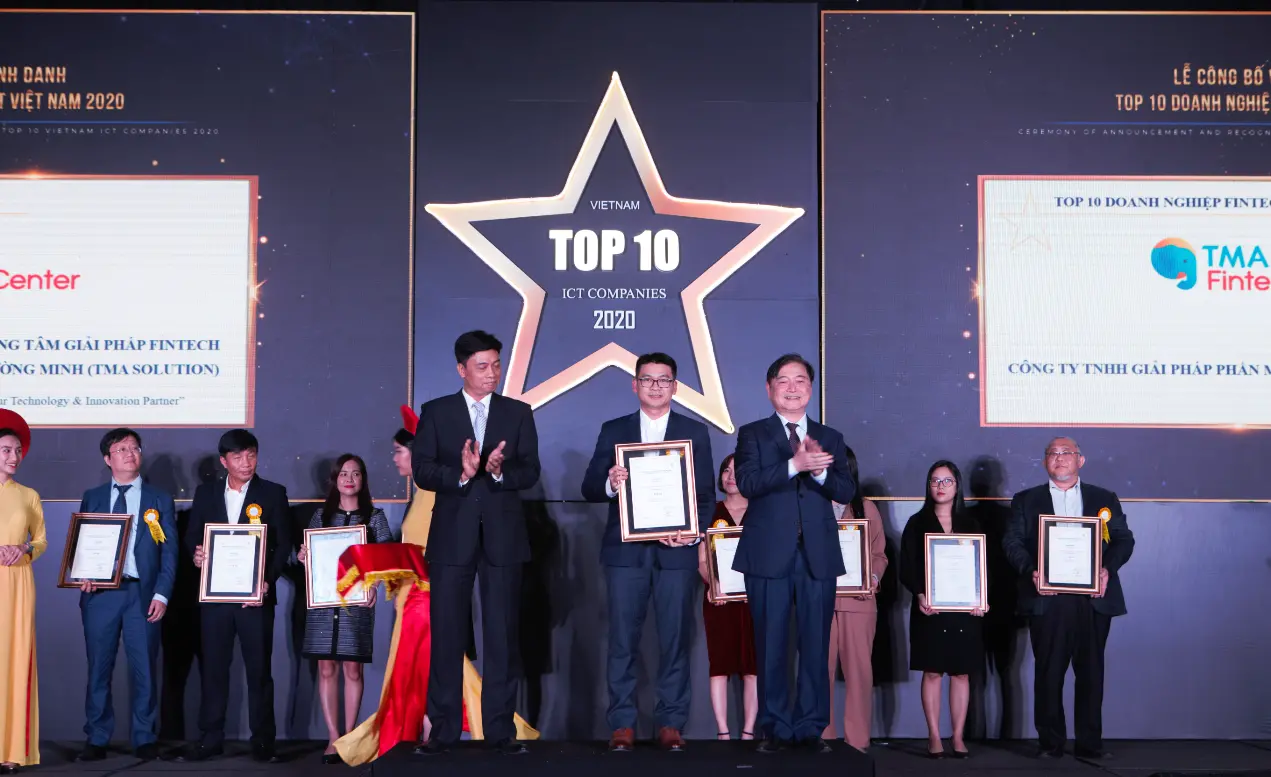 Các giải thưởng này khẳng định vị trí dẫn đầu của TMA về công nghệ 4.0. Đây là kết quả do Hiệp hội Phần mềm và Dịch vụ CNTT Việt Nam (VINASA) bình chọn trong khuôn khổ chương trình Top 10 doanh nghiệp CNTT Việt Nam 2020. Lễ công bố và trao giải đã được tổ chức vào tối 14/12/2020 vừa qua.