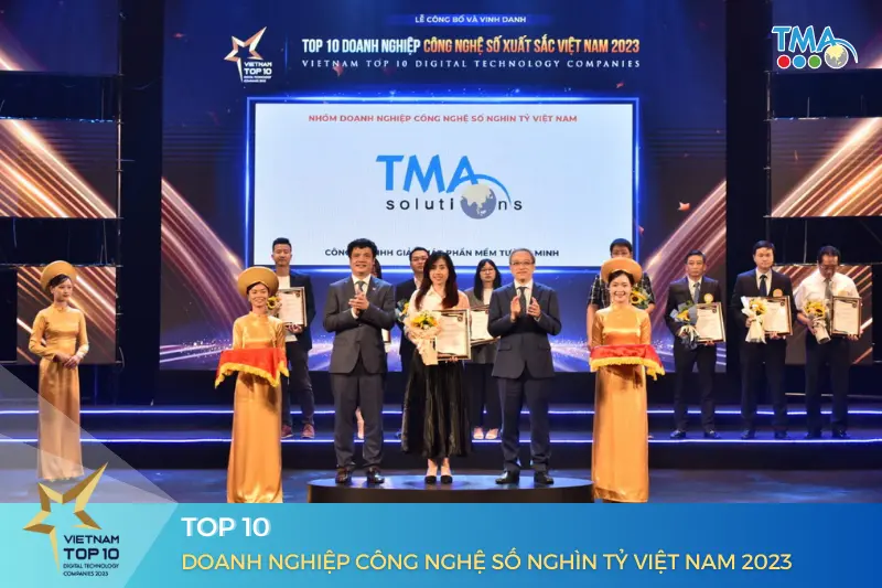 Ngoài ra, "Doanh nghiệp Công nghệ số Nghìn tỷ Việt Nam 2023" là hạng mục mới được VINASA công bố trong năm nay, nhằm tôn vinh những doanh nghiệp có doanh thu từ 1.000 tỷ đồng trở lên trong lĩnh vực công nghệ số. TMA Tech Group là một trong 13 doanh nghiệp đạt được danh hiệu này. Giải thưởng là minh chứng cho những hiệu quả mà TMA mang lại từ việc tận dụng và phát huy thế mạnh về công nghệ tại Việt Nam thông qua việc chuyển đổi số, ứng dụng công nghệ 4.0 vào việc tư vấn và triển khai đa dạng các giải pháp CNTT.