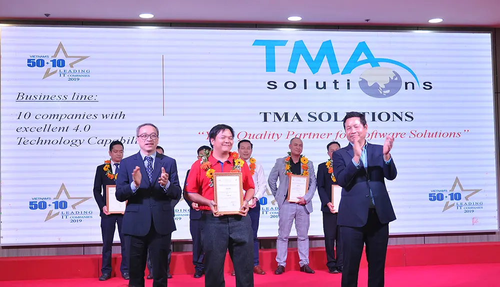 Vừa qua, TMA vinh hạnh được bình chọn là Top 50 doanh nghiệp CNTT hàng đầu Việt Nam 2019 và Top 10 doanh nghiệp có năng lực công nghệ 4.0 tiêu biểu. Đây là kết quả do TS. Mai Liêm Trực, nguyên Thứ trưởng thường trực Bộ Thông tin và Truyền thông cùng hội đồng hiệp hội Phần mềm và Dịch vụ CNTT Việt Nam (VINASA) bình chọn.